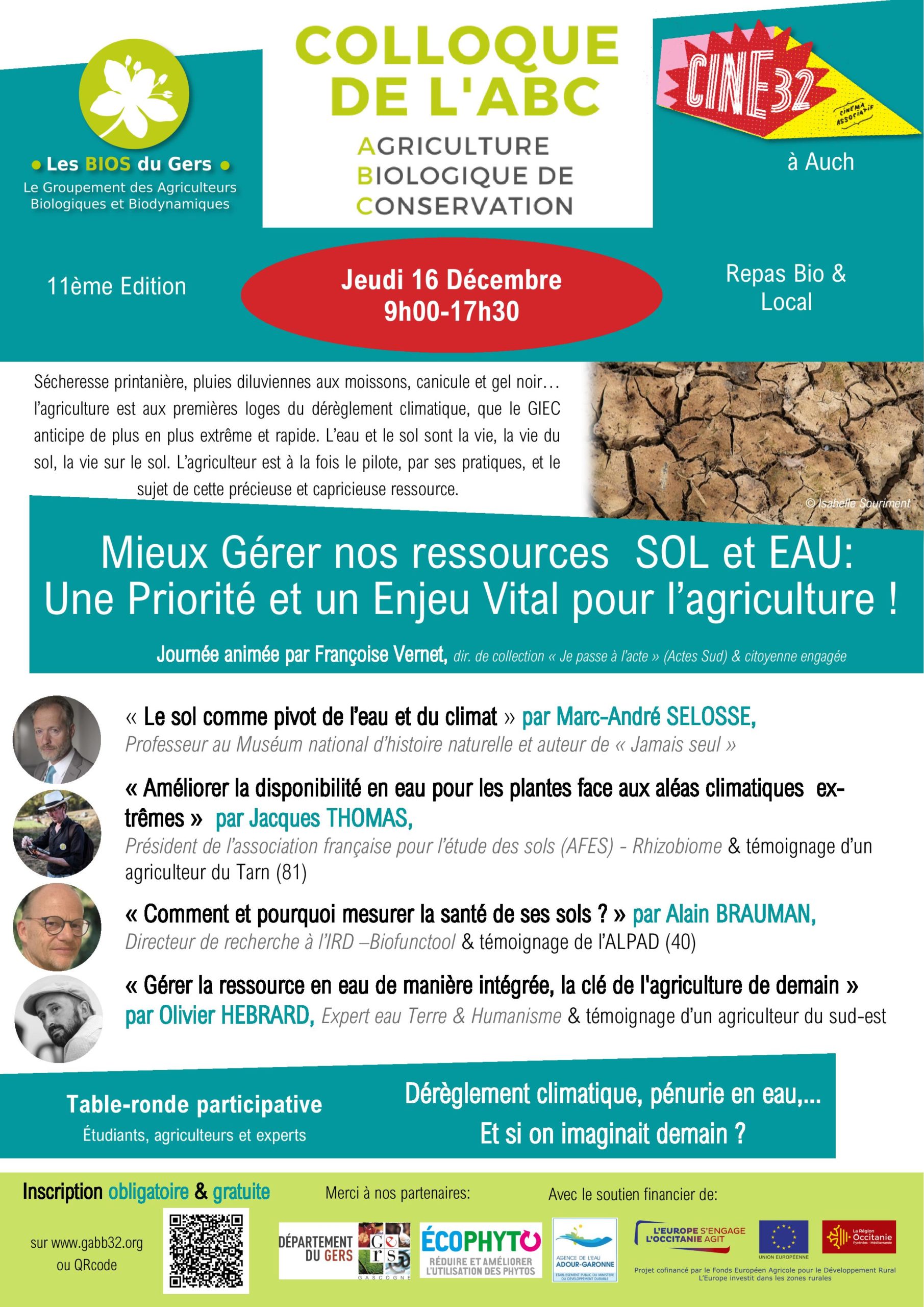 Notre colloque annuel sur l’agriculture biologique de conservation (ABC) a eu lieu le 16 décembre dernier. Cette année, il s’est intitulé « Mieux Gérer nos ressources SOL et EAU: Une Priorité et un Enjeu Vital pour l’agriculture ! » Des experts de renom ont alimenté nos réflexions : Marc-André Sélosse, Jacques Thomas, Alain Brauman et Olivier Hebrard. Leurs interventions ont été accompagnées de témoignages d’agriculteurs et d’une table ronde, mettant ainsi en résonance la parole de l’expert avec l’expérience de la pratique.